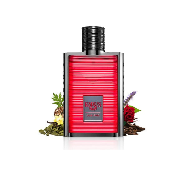 Karus Oud Fire by Khadlaj Perfumes is a fiery, captivating fragrance that ignites the senses with its bold and complex blend of spices, florals, and warm, earthy undertones.